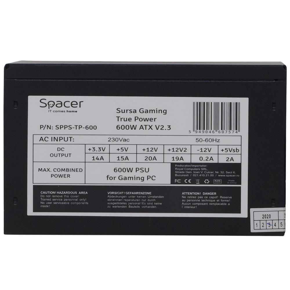 Sursa Spacer ATX True Power TP600 (600W for 600W GAMING PC), PFC activ, fan 120mm, 2x PCI-E (6), 5x S-ATA, 1x P8 (4+4), retail box, „SPPS-TP- 600”
