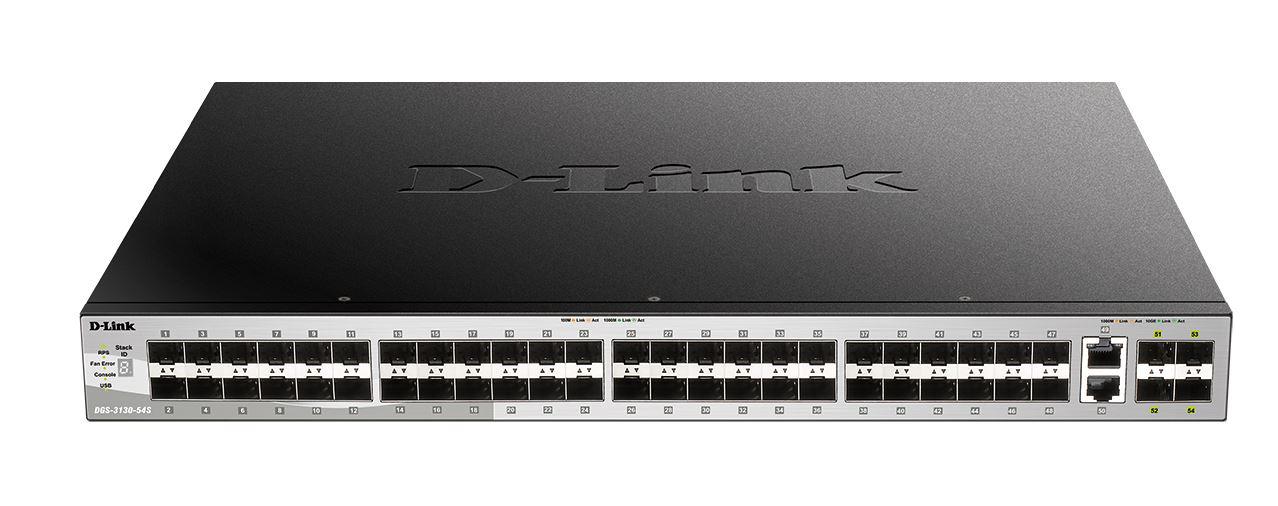 Switch D-Link DGS-3130-54PS/SI, 54-Port Gigabit SFP L3 Stackable Managed Switch, 48 x 10/100/1000BASE-T ports, 2 x 10GBASE-T and 4 x 10G SFP+ ports, Layer 3, 80 Gbps.