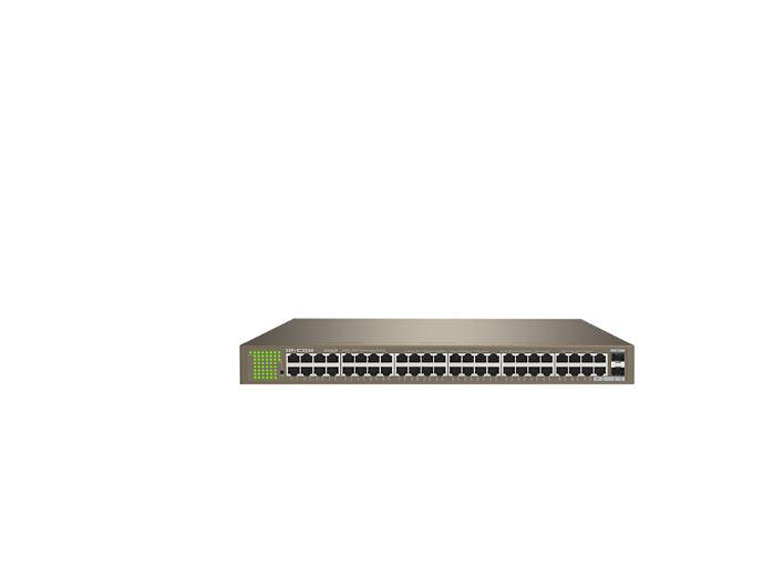 Switch IP-COM G1050F, standarde retea: IEEE 802.3, IEEE 802.3u, IEEE 802.3x, IEEE 802.3ab, IEEE 802.3z, interfata: 48 x 10/100/1000 RJ45, 2 x SFP 1000 Mbps, dimensiuni: 440 mm x 240 mm x 44 mm, carcasa metal, fara ventilator, capacitate: 100Gbps, buffer: 12mb.