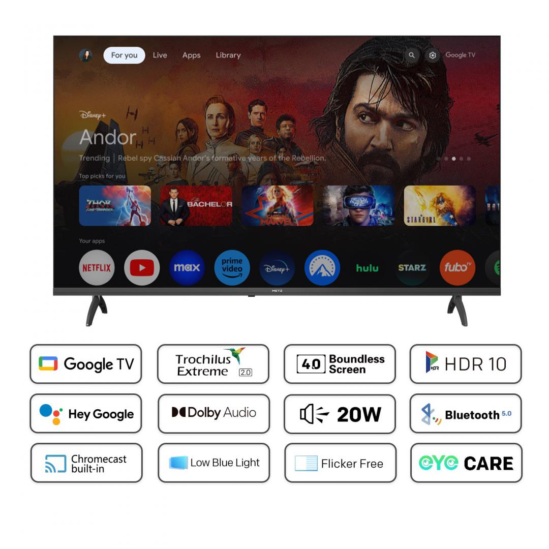 Televizor METZ LED 40MTE6000, 100 cm, Smart Google TV, Full HD, Clasa E (Model 2024)
