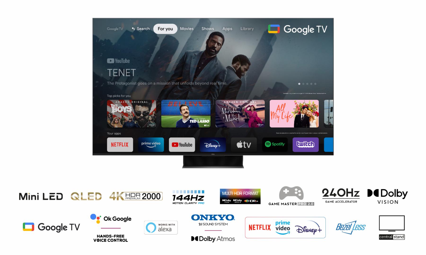 Televizor TCL MiniLed 55C845, 139 cm, Smart Google TV, 4K Ultra HD, 100 Hz, Clasa G (Model 2023)
