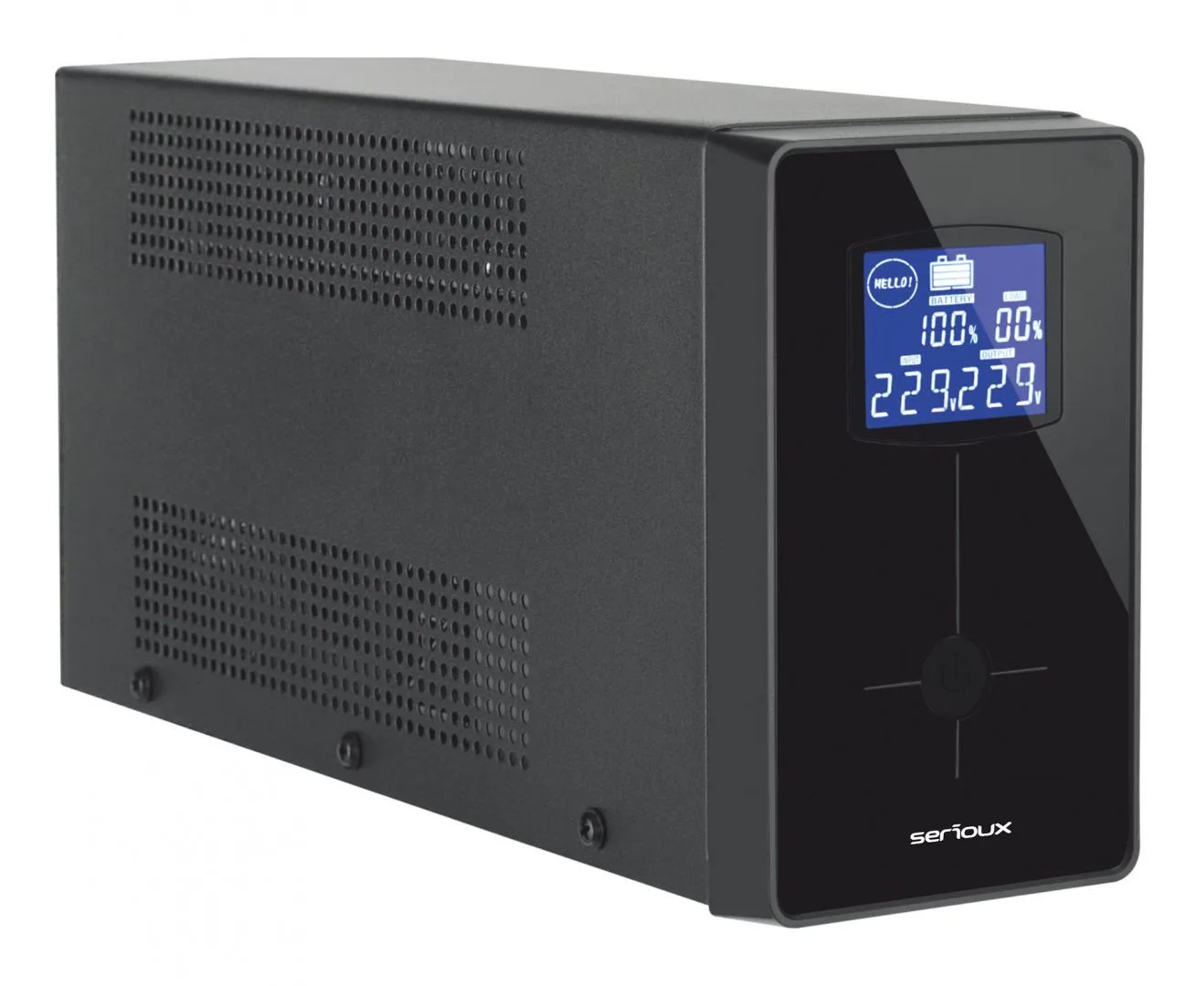 UPS Serioux Line Interactive 1500LI, ecran LCD, capacitate 1500VA/900W, 4 prize Schuko , baterie 12 V / 8.0 Ah × 2, timp mediu de functionare pe baterii 8 min – 50% sarcina, management USB/RJ45, software inclus, protectii scurtcircuit, supraîncărcare baterie, supradescărcare, suprasarcină, supratensiune, functie auto-restart la revenirea tensiunii electrice, stabilizator (AVR) de tip Boost and Buck, functie de incarcare in mod